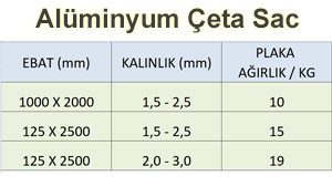 Alüminyum Çeta Sac